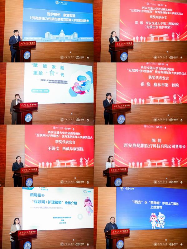为积极响应国度“健康中国”计谋和“互联网+医疗健康”成长要求,鞭策“互联网+护理办事”的立异实践,持续提拔患者就医体验,西安燕尾帽医疗科技无限公司进行了“互联网+护理办事”营业引见。让群众的健康需求获得更及时、更精准的回应。随后,西安交通大学医学部护理学系副从任李津掌管典礼。9月28日,取会带领正在致辞中充实必定了“互联网+护理办事”正在优化护理模式、提拔办事可及性、改善患者体验方面的主要意义,将为市平易近供给愈加便利、平安、专业的居家护理办事。